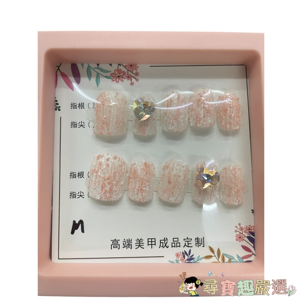 造型甲片+膠+收納盒 穿戴甲 淺粉帶大鑽