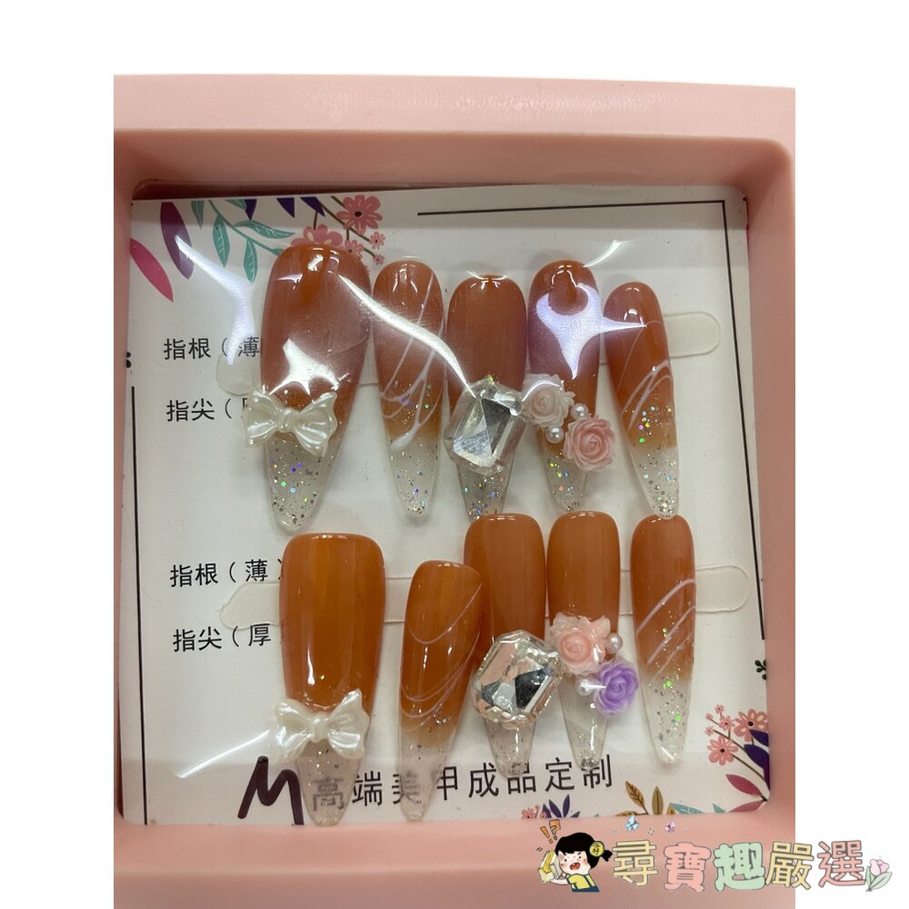 造型甲片+膠+收納盒 穿戴甲 粉色戴花