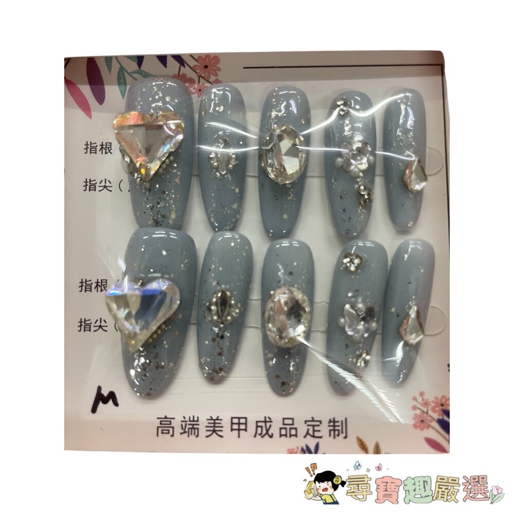 造型甲片+膠+收納盒 穿戴甲 藍色帶鑽
