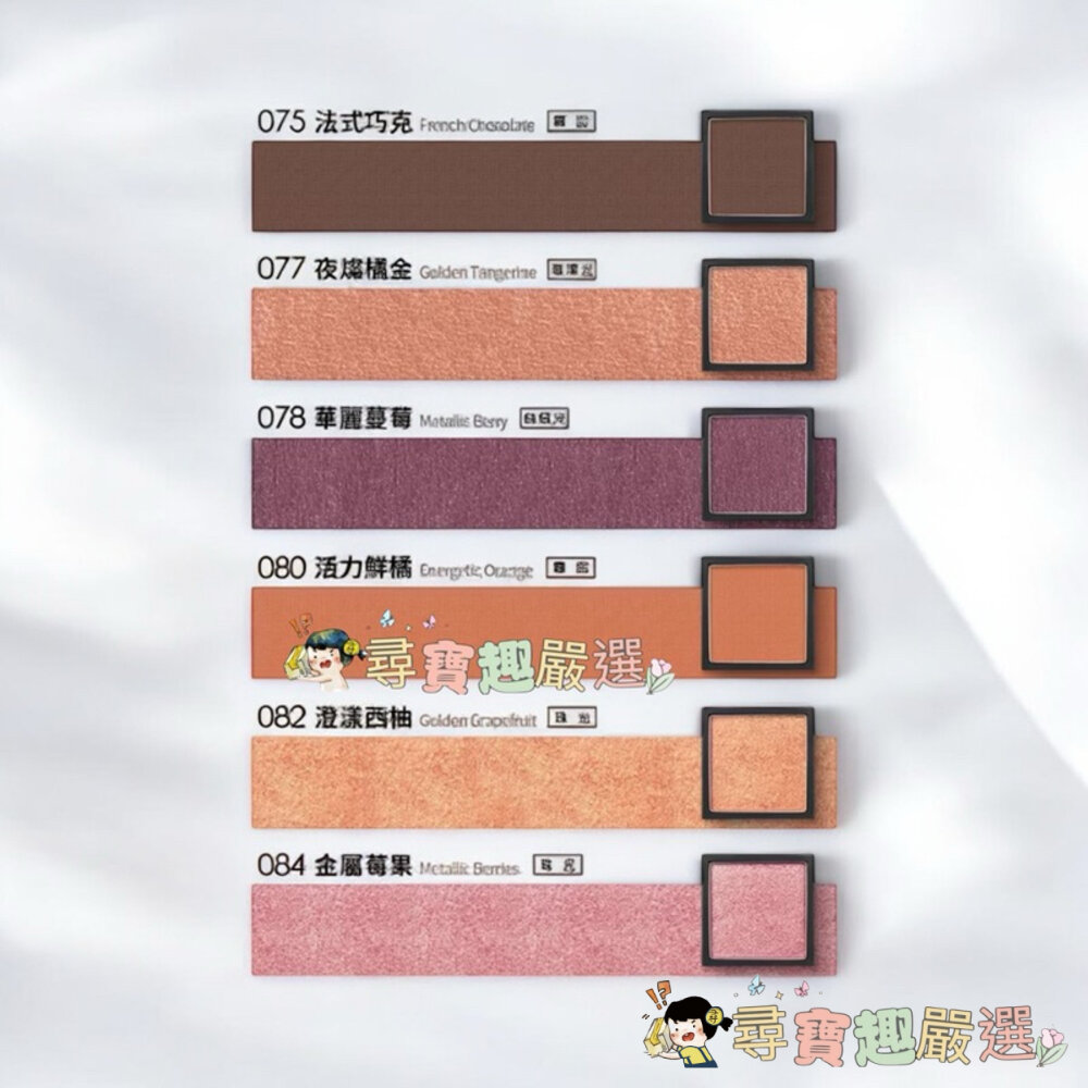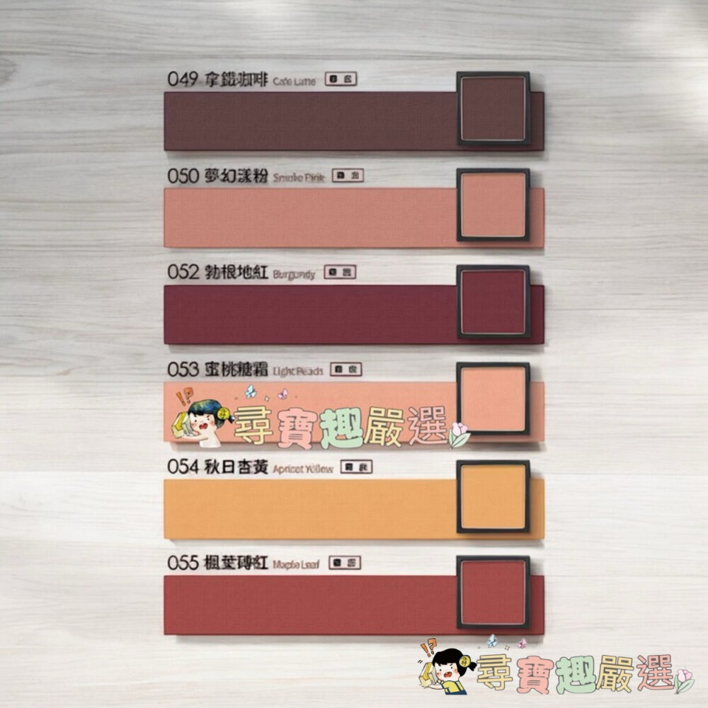 色號:122苺果慕斯(霧面), 131柔甜粉櫻(絲絨光), 113可可奶茶(霧面), 111格雷奶茶(霧面), 071罌粟橘紅(霧面), 136浪漫雛菊(絲絨光), 128稚嫩裸杏(霧面), 096光燦櫻花(璀璨光), 070焦糖奶茶(霧面), 055楓葉磚紅(霧面), 011蜜糖甜菊(璀璨光), 086松露巧克(珠光), 050夢幻漾粉(霧面), 137午後小徑(絲絨光), 123蘭姆奶酪(微霧光), 120雪粉糖霜(璀璨光), 048日落暖橘(霧面), 099慕斯奶油(霧面), 018謎樣白兔(璀璨光), 025晨光橘霧(珠光), 801蜜糖瘋派對(鑽光)