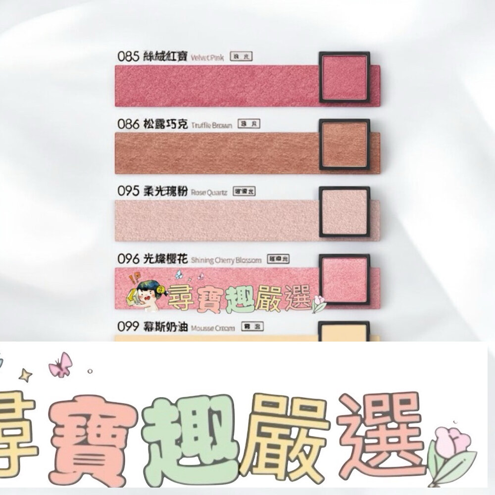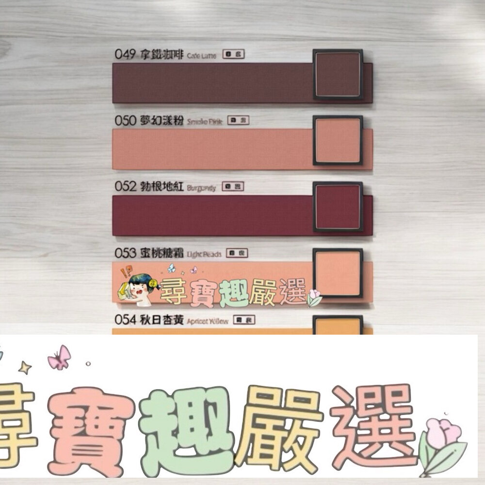 色號:122苺果慕斯(霧面), 131柔甜粉櫻(絲絨光), 113可可奶茶(霧面), 111格雷奶茶(霧面), 071罌粟橘紅(霧面), 136浪漫雛菊(絲絨光), 128稚嫩裸杏(霧面), 096光燦櫻花(璀璨光), 070焦糖奶茶(霧面), 055楓葉磚紅(霧面), 011蜜糖甜菊(璀璨光), 086松露巧克(珠光), 050夢幻漾粉(霧面), 137午後小徑(絲絨光), 123蘭姆奶酪(微霧光), 120雪粉糖霜(璀璨光), 048日落暖橘(霧面), 099慕斯奶油(霧面), 018謎樣白兔(璀璨光), 025晨光橘霧(珠光), 801蜜糖瘋派對(鑽光)
