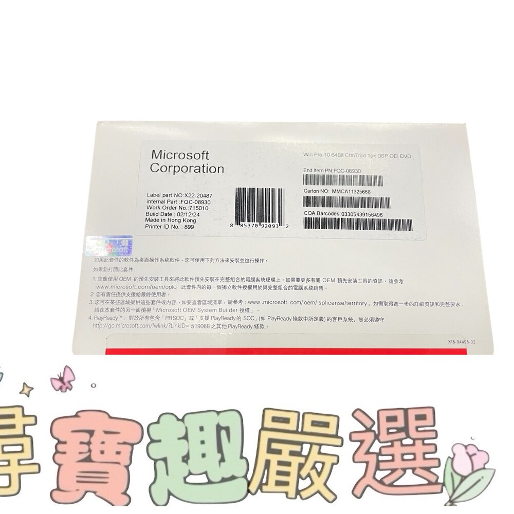 商品名稱:微軟 WIN PRO 10 專業PRO 隨機版 正版現貨現貨