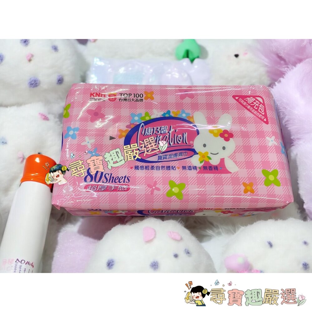 康乃馨寶寶潔膚濕巾超厚補充包兔子80片:效期至2027/6月