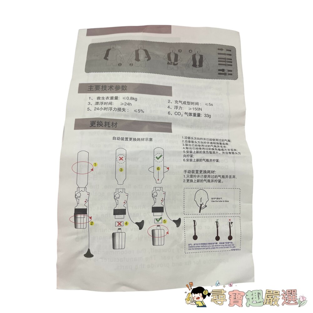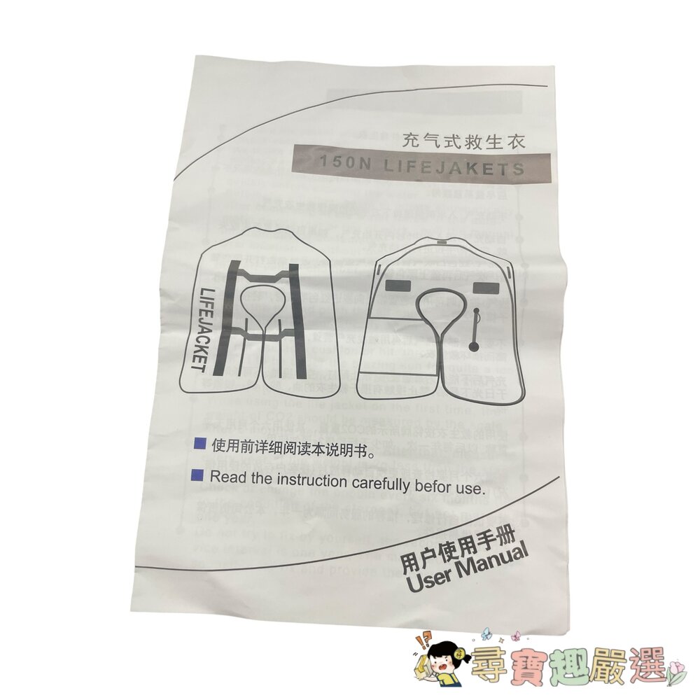 手動充氣救生衣 亮眼橘紅色 成人款現貨 封面照片