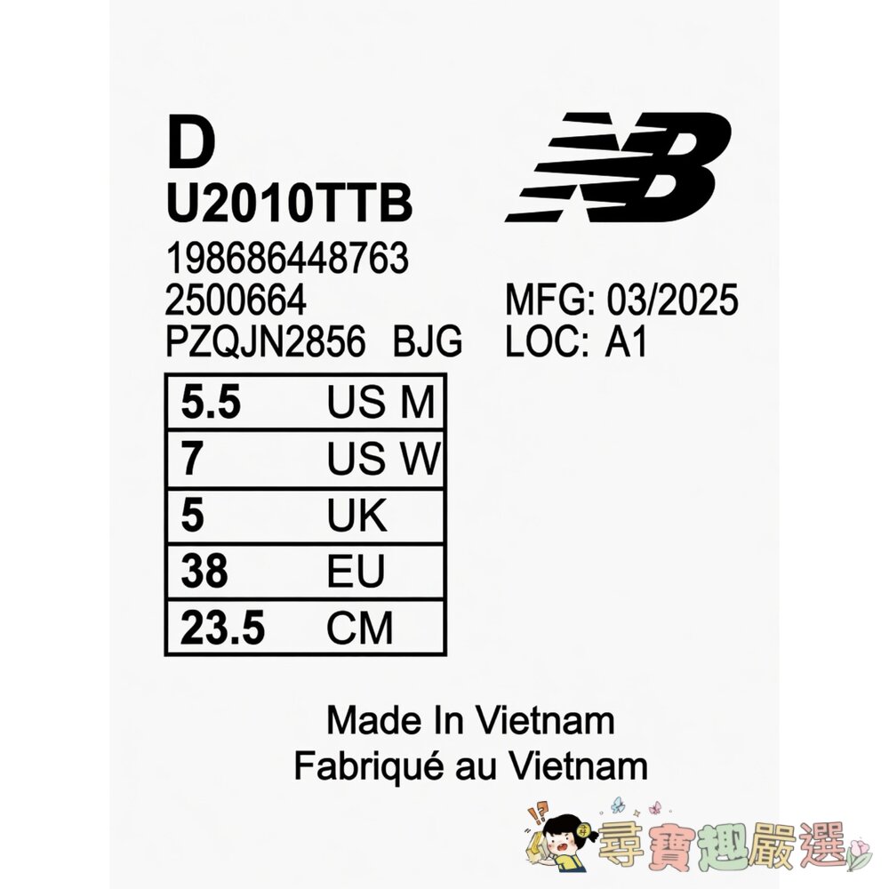 商品名稱:New Balance 男款 2010 D楦慢跑鞋 U2010TTB-D, 23.5cm, 黑色,現貨