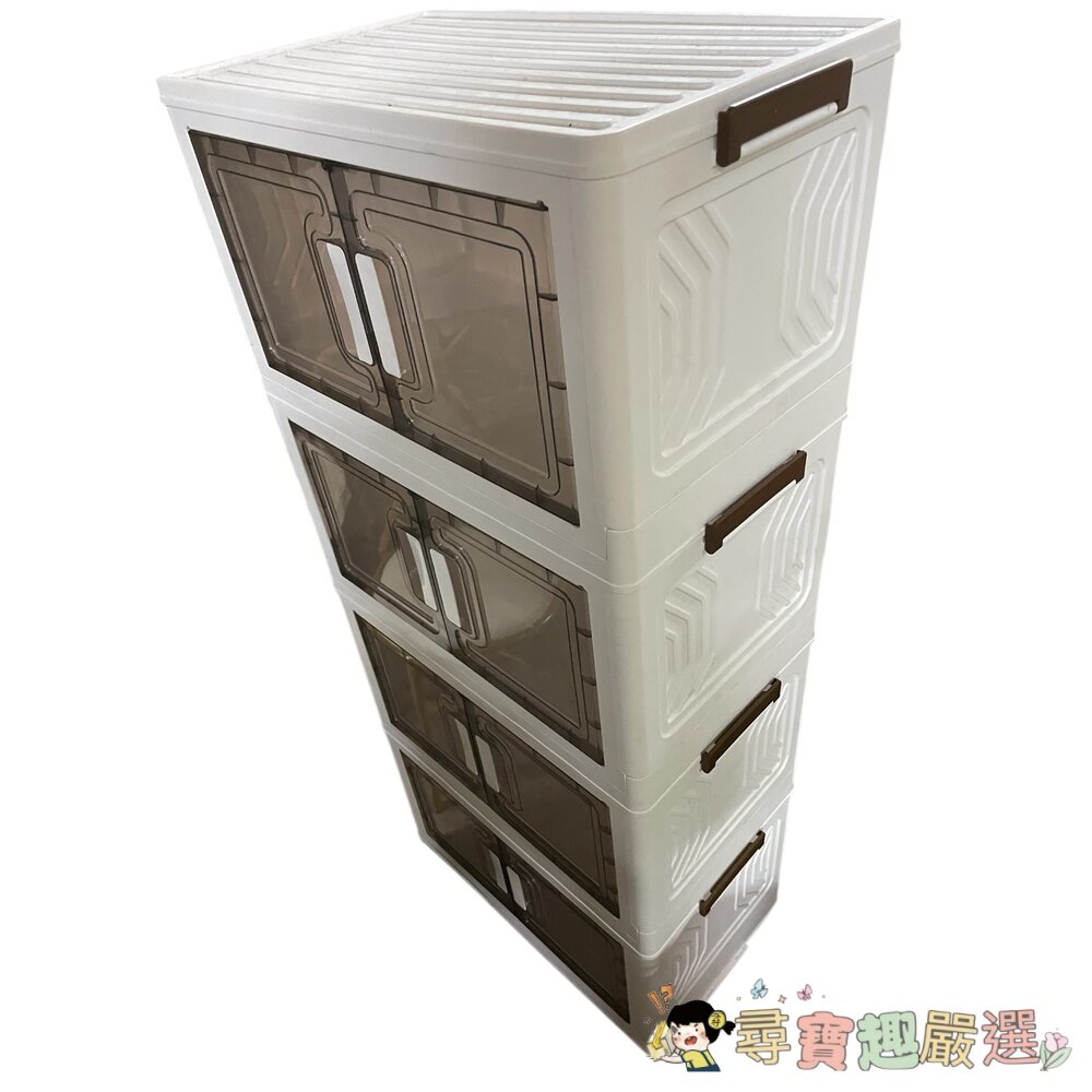 商品名稱:卡扣式摺疊四層櫃 帶輪胎現貨