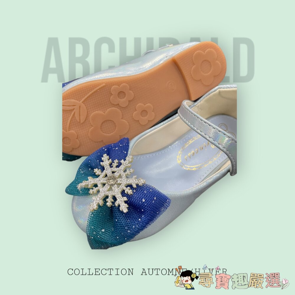 大雪花水鑽/金屬飾扣(有 Swarovski 或類似水晶感),鞋底柔軟防滑,內裡布料舒適